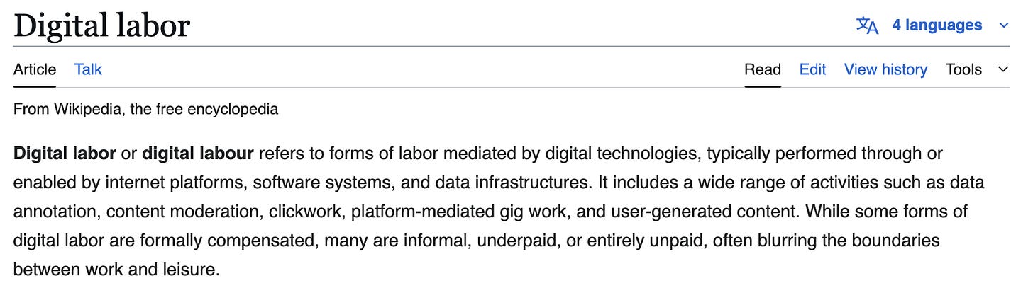 To go a step further, the ‘cost’ of spending excessive time online feels very real when understood through the sociological concept of digital labor: